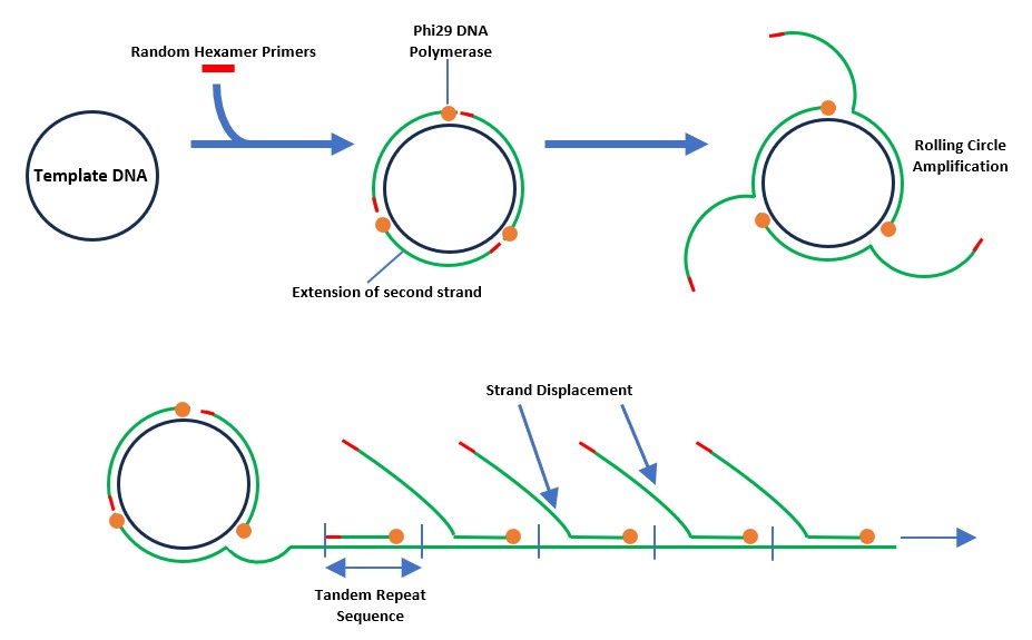 phi29 DNA Polymerase catalyzes a highly processive DNA synthesis (up to 70,000 base insertions per binding event) coupled to strand displacement activity. It possesses an inherent 3’-5’ exonuclease activity acting preferentially on single-stranded DNA.