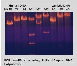 tiAmplus DNA Polymeraz, orta sıcaklıklarda inhibe edilmiş (bloklanmış) olan ve reaksiyonun oda sıcaklığında kurulmasına olanak tanıyan yeni nesil bir “hot start” enzim karışımıdır. Polimeraz aktivitesi, normal PCR döngü koşulları sırasında yeniden aktive olur. tiAmplus DNA Polymeraz; Thermus sp. DNA polimeraz, Pyrococcus sp. DNA polimeraz ve polimeraz aktivitesini artıran faktör içeren, modifiye edilmiş ve optimize edilmiş termostabil bir enzim karışımıdır. Amplifikasyon tamponunun benzersiz bileşimi, yüksek sıcaklıklarda pH’ın etkin şekilde tamponlanmasını sağlar ve uzun genomik hedeflerden güçlü/verimli sonuçlar elde edilmesine olanak tanır. Bu polimeraz, 3 kb’den 25 kb’nin üzerine kadar büyük genomik DNA fragmentlerini ve 40 kb’ye kadar episomal fragmentleri etkin bir şekilde çoğaltabilir. Ayrıca 0.1 kb gibi küçük fragmentlerin güvenilir amplifikasyonunu da sağlar. Enzim karışımı özellikle ökaryotik genom amplifikasyonu, klonlama ve analiz için uygundur. Büyük amplifikasyon ürünlerinden kontig (contig) oluşturmayı büyük ölçüde kolaylaştırarak genom haritalama ve dizileme için idealdir. Lambda fajları ve kozmidlerde klonlanmış dizilerin karakterizasyonuna olanak tanır. GC açısından zengin bölgeler içeren zor şablonlarda PCR sonuçlarını iyileştirir.